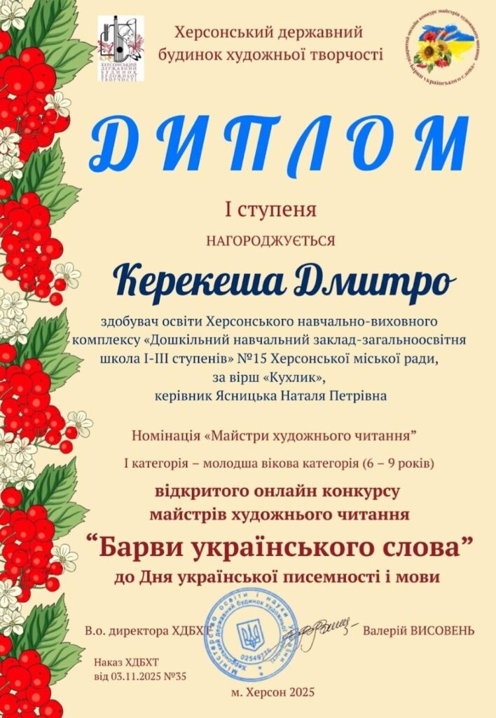 Дмитро Керекеша — керівник: Наталя Ясницька