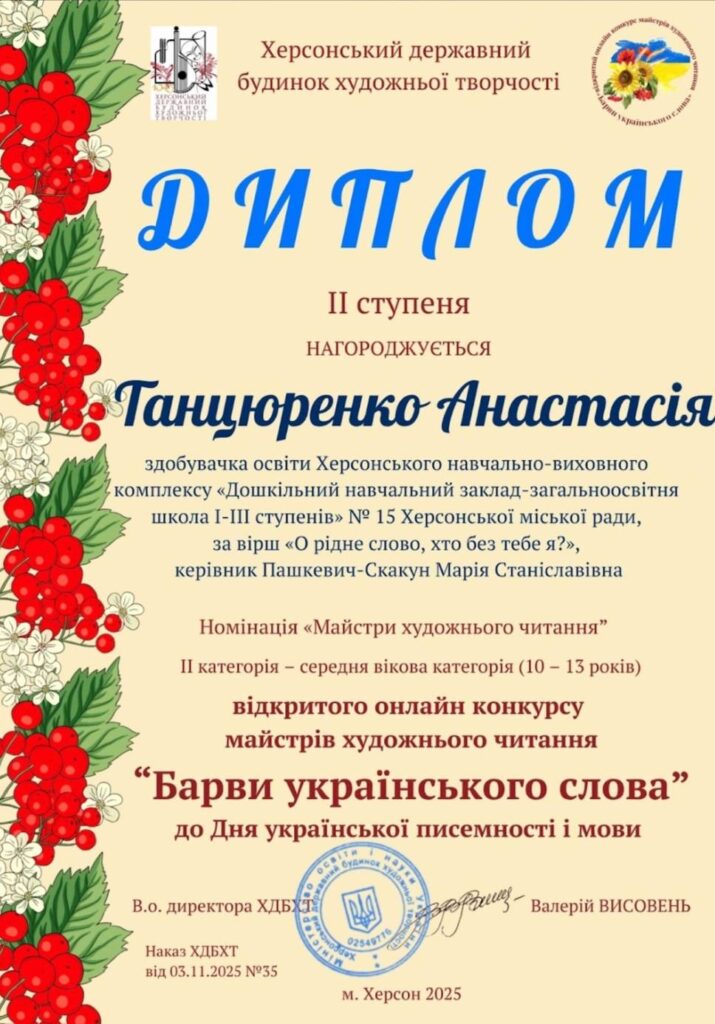 Анастасія Танцюренко — керівник: Марія Пашкевич-Скакун