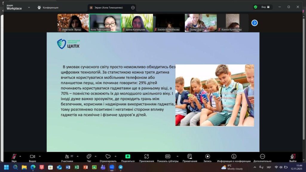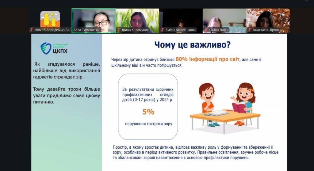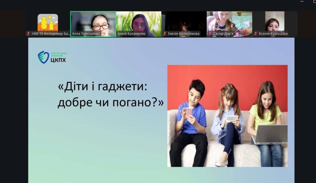 12 листопада 2025 року учні 5-9 класів Херсонського НВК 15 долучились до інтерактивного онлайн- заняття на тему “Діти і гаджети: добре чи погано?”, яке провела лікар Херсонського районного відділу ДУ “Херсонський обласний центр контролю та профілактики хвороб МОЗ України” Алла ТИМОШЕНКО. Під час заняття учні дізнались про позитивний та негативний вплив гаджетів, яким має бути освітлення та робоче місце при роботі з гаджетом. Підсумком заняття було проходження вікторини ” Діти та гаджети: користь чи шкода”. Учасники заняття зробили висновок, що гаджети- це інструмент, який може бути і корисним, і шкідливим . Важливо вміти користуватись ними розумно, поєднуючи з активним відпочинком і живим спілкуванням.
