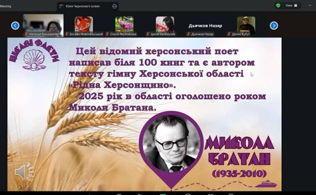 У рамках обласного інтелектуального турніру патріотів Херсонщини Херсонська обласна бібліотека для дітей імені Дніпрової Чайки провела для учнів 8–9 класів нашої школи пізнавально-краєзнавчий захід “Літературний круїз по Херсонщині”. Під час заходу школярі здійснили цікаву подорож сторінками літературного краєзнавства, відкрили для себе нові імена письменників рідного краю та перевірили свої знання у вікторинах і творчих завданнях. “Літературний круїз” об’єднав знавців рідного краю і любителів читання, подарувавши учасникам гарний настрій, натхнення та бажання ще глибше пізнавати культурну спадщину Херсонщини.