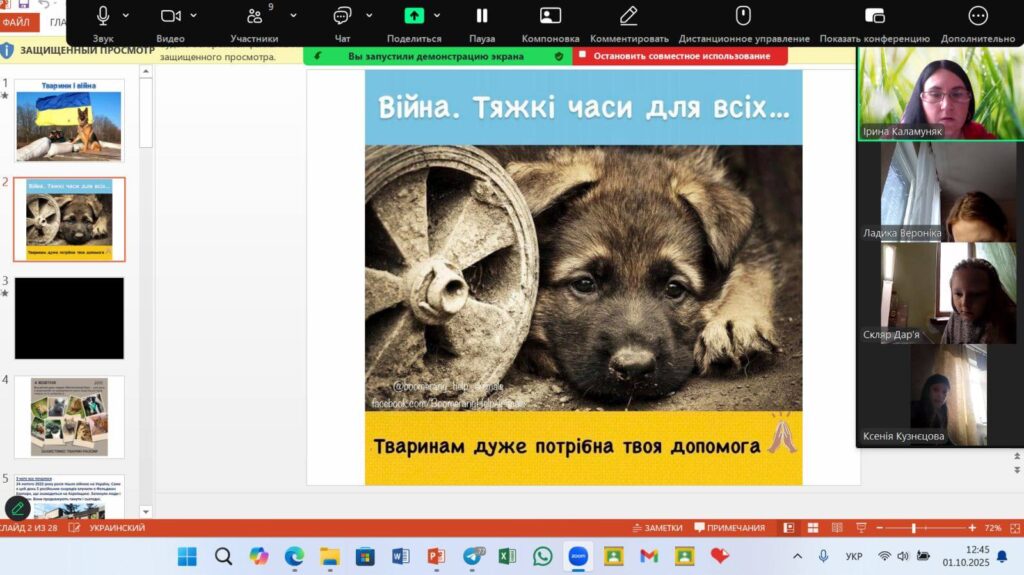 З учнями 5 класу провели виховну годину ” Тварини та війна”. Адже війна торкнулася не лише людей, а й наших менших друзів. Тварини, які завжди були поруч, сьогодні потребують нашої особливої турботи. Вони стають жертвами обстрілів, залишаються без домівок і господарів,часто залишені напризволяще. Сьогодні, у День захисту тварин, згадаймо, що наша доброта і турбота можуть стати для них шансом на життя. Допоможімо тим, хто не має голосу, але має право на безпеку і любов ![]()