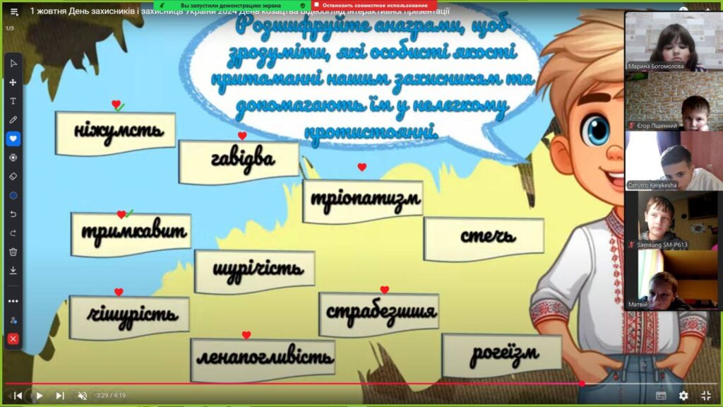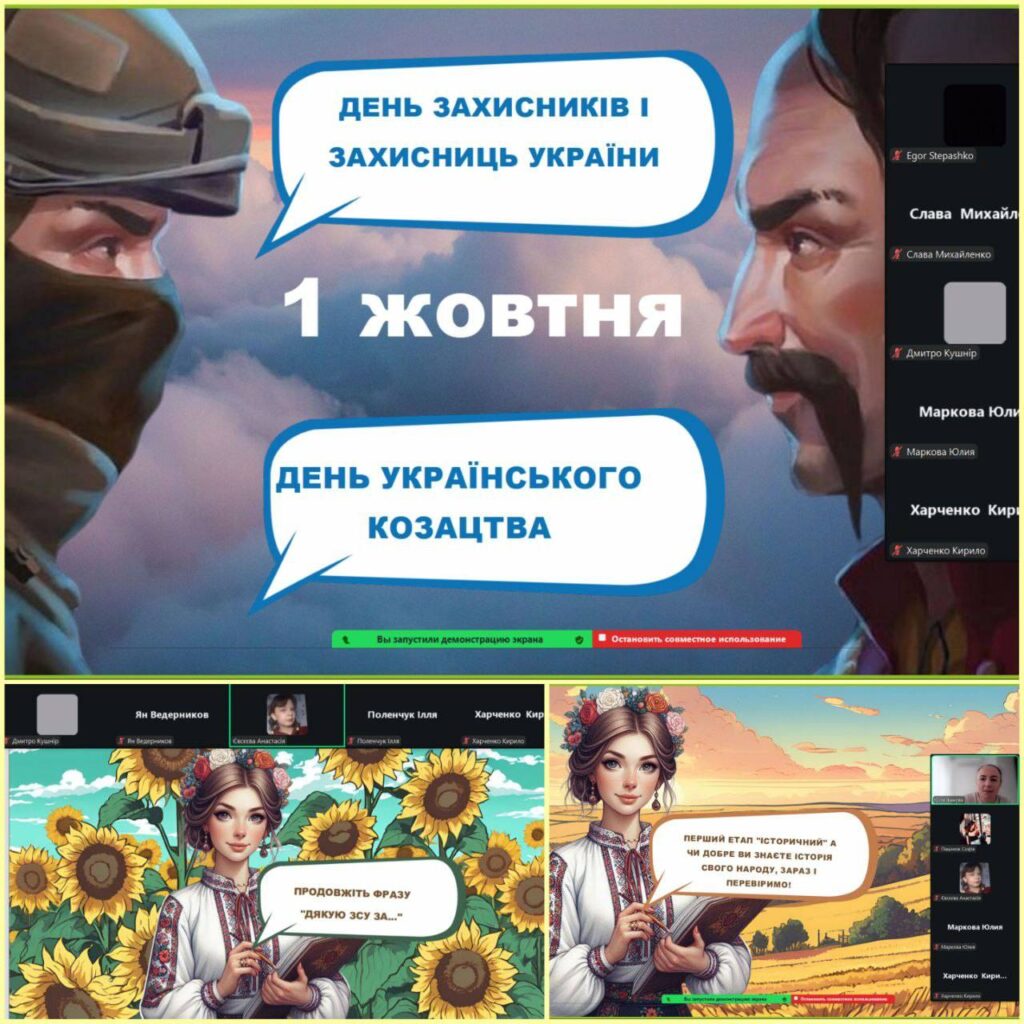 До Дня захисників та захисницб України у нашому закладі були проведені виховні години, організовані вчителями Наталією Ясницькою, класним керівником 4-А класу, та Юлією Івановою, класним керівником 7-А класу. Під час заходів учні дізналися про історію свята, традиції козацтва та важливу роль захисників України. Діти активно брали участь у бесідах, іграх та виразили щиру вдячність і шану нашим героям. Такі виховні години сприяють укріпленню національної свідомості, патріотичних цінностей та єдності нашого народу, виховують гордість за країну та повагу до тих, хто оберігає її мир і незалежність