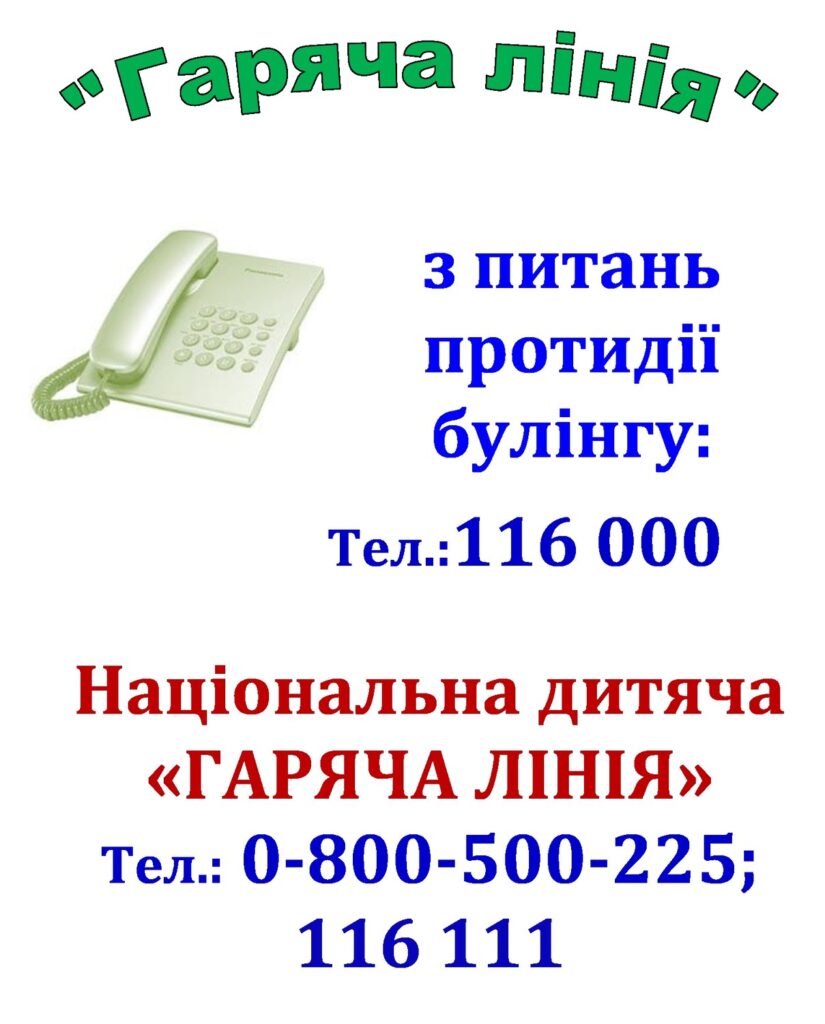 - гаряча телефонна лінія щодо булінгу (цькування) 116 000